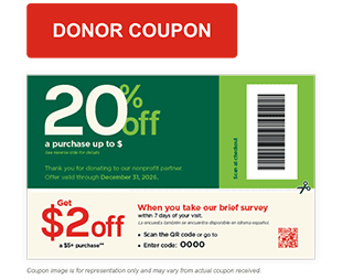 Aceptamos donaciones de ropa y artículos para el hogar en nombre de organizaciones locales sin fines de lucro en cada establecimiento. Pagamos a nuestros socios sin fines de lucro las donaciones para ayudarlos a financiar los programas en nuestras comunidades. Las compras en nuestras tiendas no contribuyen a ninguna organización sin fines de lucro.
