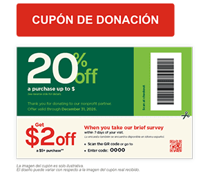 Aceptamos donaciones de ropa y artículos para el hogar en nombre de organizaciones locales sin fines de lucro en cada establecimiento. Pagamos a nuestros socios sin fines de lucro las donaciones para ayudarlos a financiar los programas en nuestras comunidades. Las compras en nuestras tiendas no contribuyen a ninguna organización sin fines de lucro.